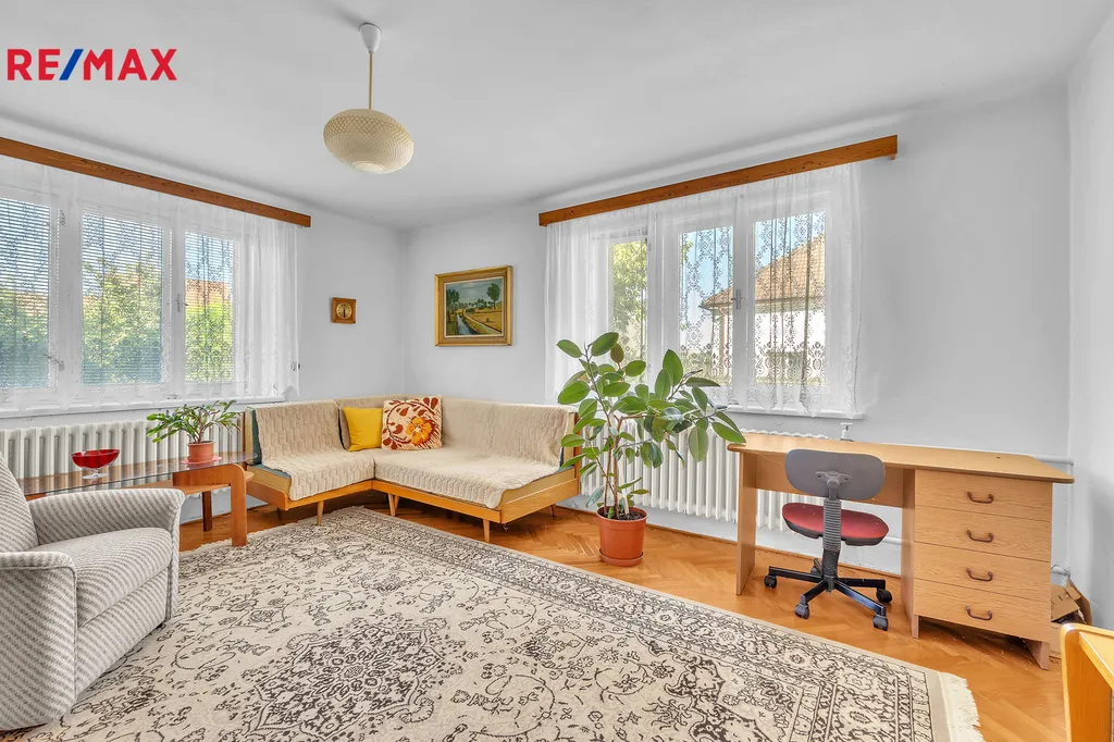 Zděný dům nabízí 4 pokoje, které nabízejí mnohostranné možnosti využití (obývací pokoj/ložnice/dětský pokoj). Dům je jednopodlažní, je částečně podsklepen a půdním prostorem. Valbová střecha s krytinou s eternitových šablon. Součásti domu je prostorná garáž (34,70 m2). Svislé konstrukce z plných cihel, stropní konstrukce betonová.