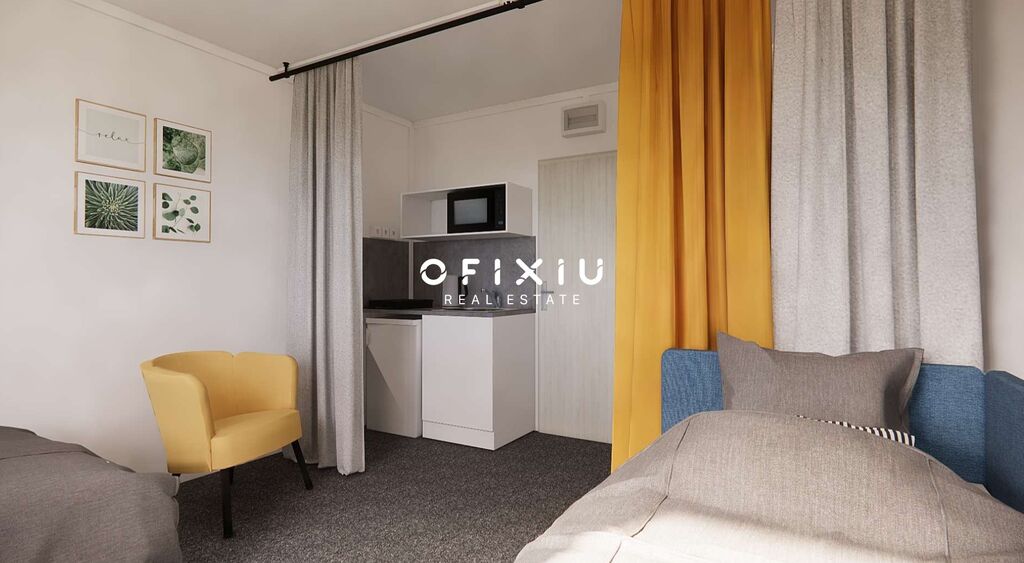 Jednotka je vybavena kuchyňskou linkou včetně dřezu a lednice, dvěma postelemi, pracovními stoly a skříněmi. Koupelny jsou společné pro celý objekt, jsou rozděleny na pánské dámské a nachází se v nich sprchy, toalety a umyvadla se zrcadlem.