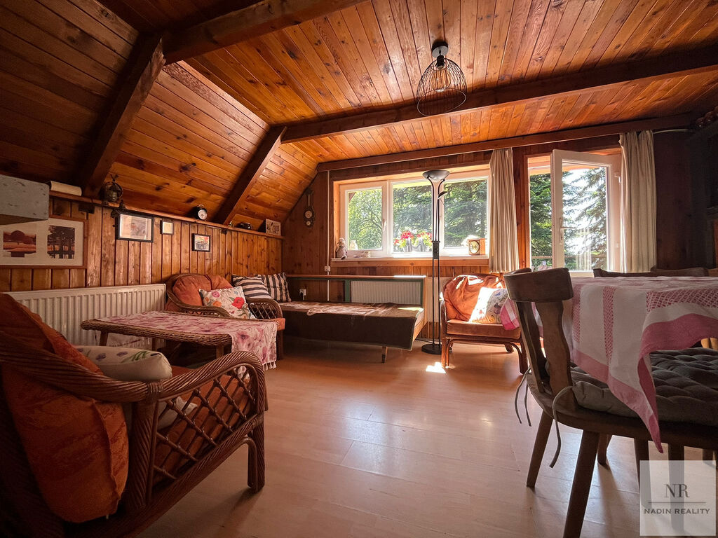 Vnitřní dispozice chaty zahrnují otevřené obytné prostory, které podporují rodinnou interakci. Moderní vybavení a dostatek úložných prostor usnadňují každodenní rodinný život. Chata je ideálním místem pro rodiny, které hledají harmonické a bezpečné prostředí s možností trávení společných chvil uprostřed přírody.