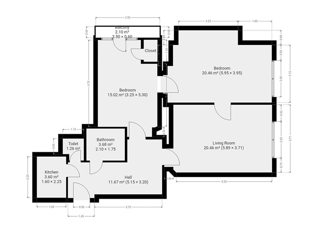Byt je nabízen nezařízený, což umožňuje přizpůsobit si interiér dle vlastního stylu. Kuchyně je vybavena lednicí a kombinovaným sporákem. Obývací pokoj poskytuje dostatek prostoru i pro jídelní část. K dispozici jsou také dva samostatné pokoje, vhodné jako ložnice, dětský pokoj či pracovna. Součástí bytu je praktická komora. Koupelna je vybavena vanou, umyvadlem a pračkou, toaleta je samostatná.