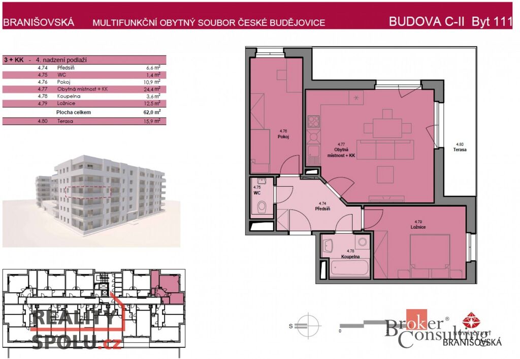 Hledáte moderní bydlení v klidné, ale zároveň skvěle dostupné lokalitě Českých Budějovic? Nabízíme k pronájmu nový, právě dokončený byt 3+kk v nově postaveném bytovém komplexu "Nová čtvrť Branišovská". Byt se nachází ve 3. patře (4. NP) šestipodlažního domu.