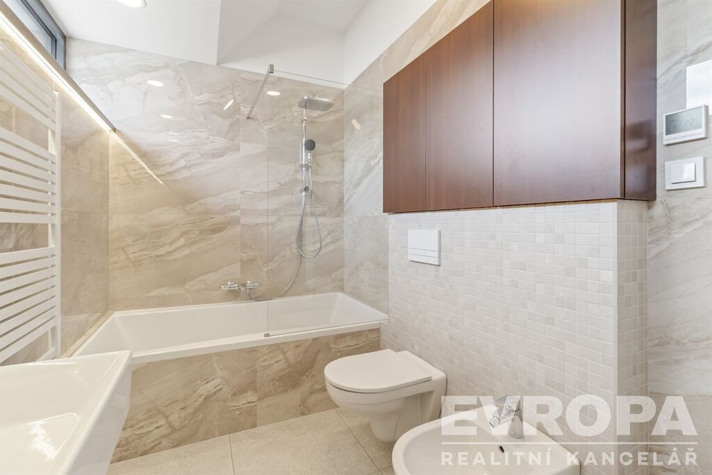 Nabízíme k pronájmu moderní rodinný dům 5+kk s dvougaráží a zahradou o celkové velikosti 180 m², situovaný v klidné části Prahy – Benice. Tento nově postavený dům z roku 2025 spojuje komfortní bydlení s moderními technologiemi a dobrou dostupností do centra města.