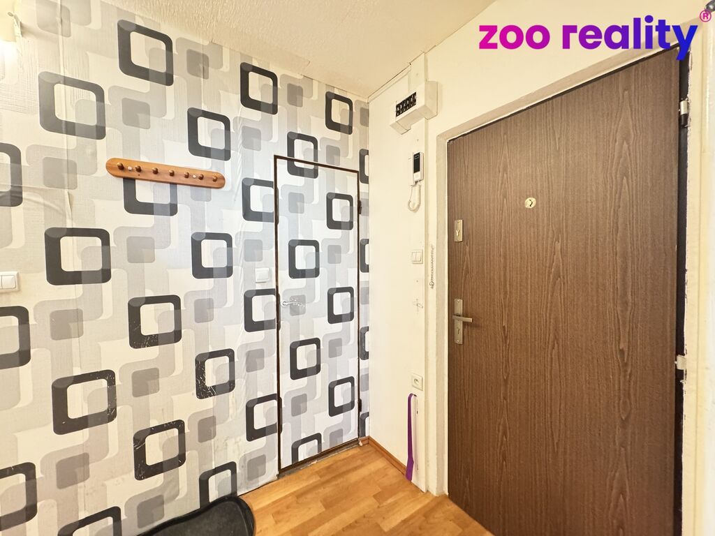 Najdeme zde vstupní předsíň s dveřmi do všech pokojů, koupelny, samostatné toalety i do praktické komory. Obývacím pokojem dále vejdeme do kuchyňského koutu a dále k bytu náleží další komora proti vchodovým dveřím k bytu na chodbě domu.