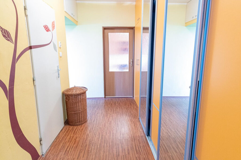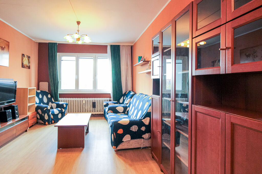 Byt se nabízí vybavený. Kuchyňská linka disponuje lednicí, elektrickou troubou, elektrickým sporákem a digestoří. Obývací část je zařízená pohovkou, jídelním stolem s židlemi, komodami, obývací stěnou, televizí, křeslem a konferenčním stolkem. Součástí ložnice je postel, šatní skříň, komoda a pracovní stůl. V koupelně najdeme vanu a umyvadlo. Toaleta a pračka jsou oddělené. Pokoje jsou neprůchozí.