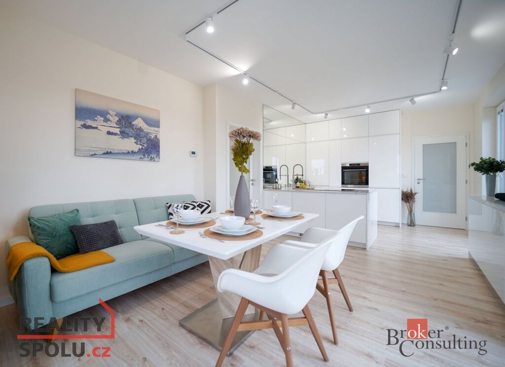 Součástí pronájmu je garážové stání v suterénu domu. Další garážové stání je možné si pronajmout za 1 500,- Kč/měsíc.