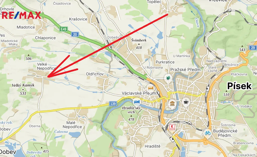 Další výhoda je, že z Písku je napojení na dálnici D4 , z dojezdem do Prahy za 50 min.