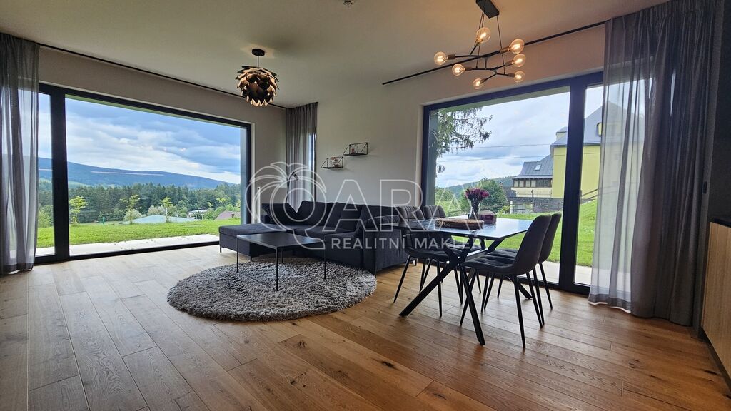 Nabízíme vám k dlouhodobému pronájmu kompletně vybavený slunný horský apartmán 3+KK o výměře 67 m2, situovaný v klidné části Jánských Lázní. K apartmánu náleží sklep o výměře 3 m2 a rozlehlá terasa o výměře 109 m2