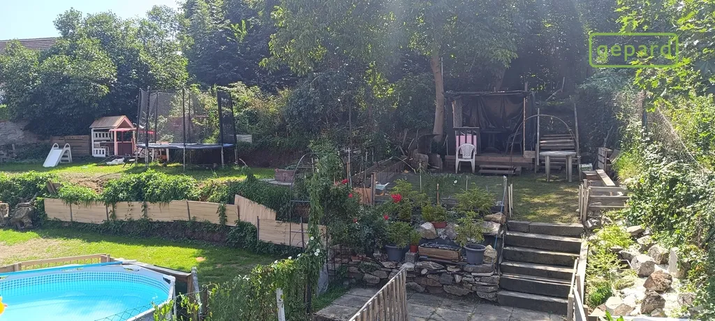 Vytápění je řešeno ÚT s plynovým kotlem v kombinaci s elektrokotlem. Dům je napojen na veškerou infrastrukturu (voda, kanalizace, plyn). Na objekt navazuje 636 m2 prostorná terasovitá zahrada s výhledem na Zámek a Kostel svatého Víta, zastavěná plocha nemovitosti je 381 m2.