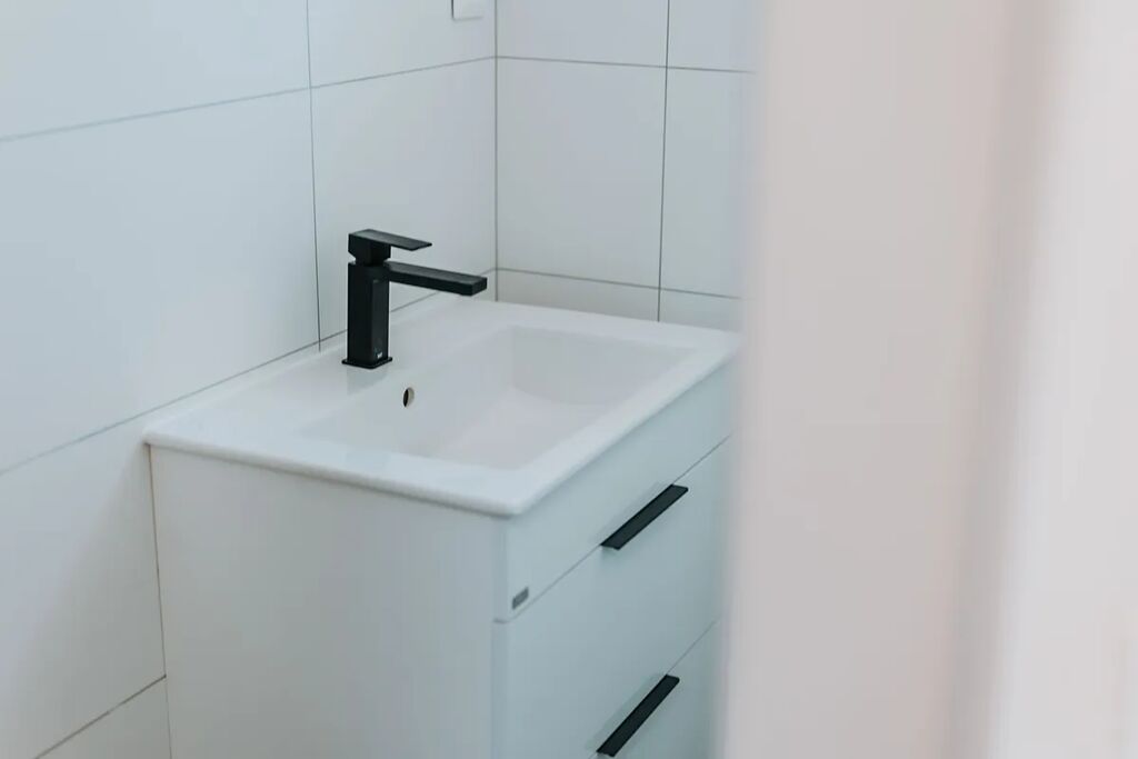 • Koupelny s černými bateriemi a podlahovým vytápěním
