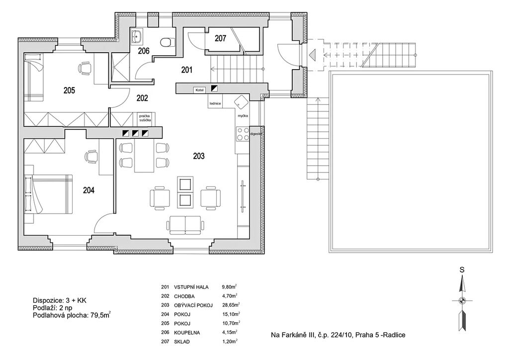 Prodej bytu 3+kk se soukromou zahradou – Na Farkáně III, Praha 5 – Radlice