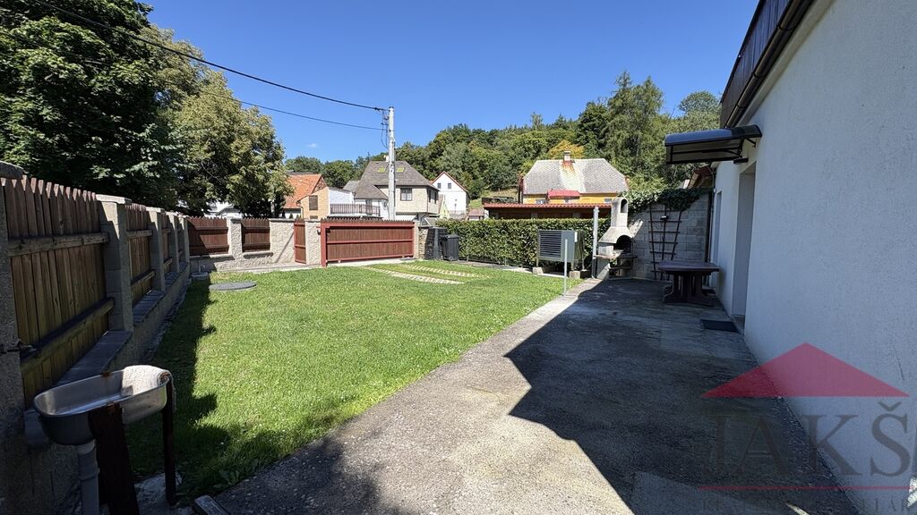 Zahrada: 107 m2 Oplocená, udržovaná, slunná zahrada s vjezdem, zatravněným parkovacím místem a zpevněnou plochou na posezení s venkovním krbem u domu.