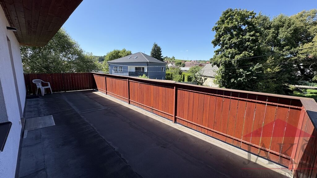 Popis: 1.NP (61,4 m2): vstupní chodba, dílna, kotelna (el. boiler a technologie k TČ), prostorný obývací pokoj se schodištěm do 2.NP, kuchyň (kuch. linka s HV troubou se sklo-ker. deskou) se vstupem na zahradu, koupelna s podlahovým topením (rohová vana, umyv. se zrcadlem, WC, topný žebřík); 2.NP (38,2 m2): chodba se schodištěm do podkroví a vstupem na velkou terasu, koupelna (umyv. se zrcadlem, topný žebřík, WC), ložnice s balkonem, ložnice; podkroví: 2x půdní prostor (bez světlé výšky, avšak jako dětský pokoj pro malé děti ideální).