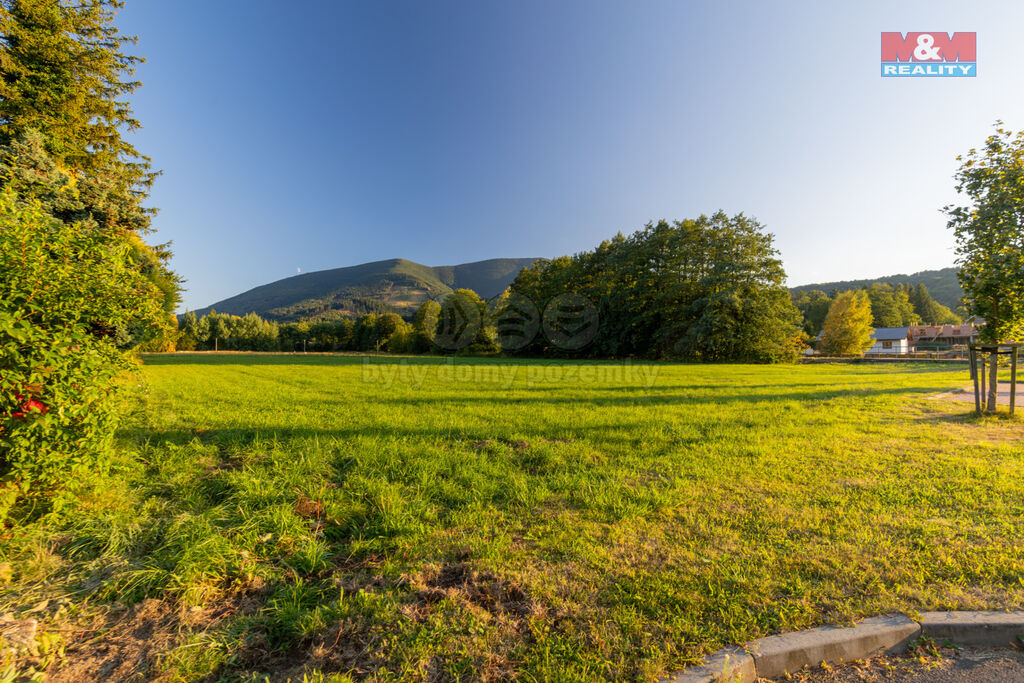 Pozemek je situován na klidném místě s výhledem na Lysou horu, Smrk a Ondřejník.