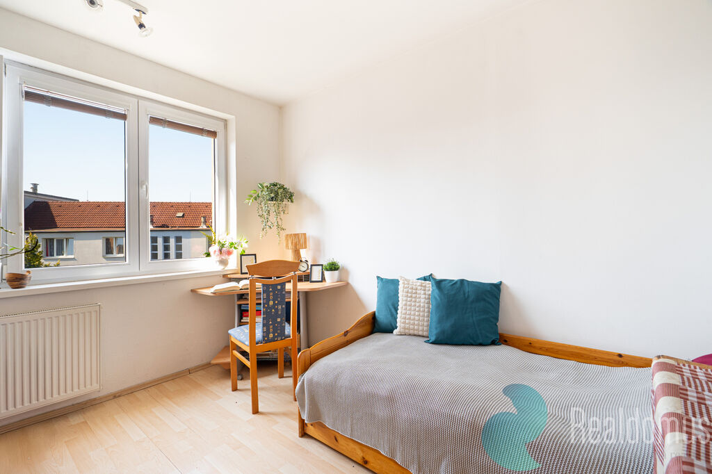Tento byt má hned několik benefitů. Zajímavý je nejen svou polohou, ale také tím, že na patře najdeme pouze dvě bytové jednotky. V krátké docházkové vzdálenosti školy, školky, zastávka MHD, nákupní centrum IGY, pošta. Do centra města se dostanete procházkou během několika minut. V okolí jsou modré zóny.