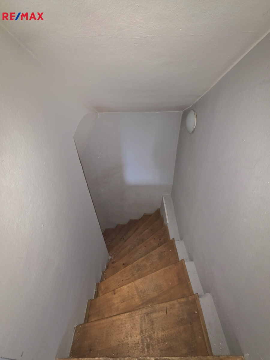 Dispoziční řešení - v přízemí domu se nachází vstupní chodba, prostorný pokoj s kuchyňským koutem a krbovými kamny, menší obytná místnost a koupelna s vanou a toaletou, po dřevěných schodech vyjdeme do patra, kde jsou 4 obytné místnosti a samostatná toaleta. Nově byl instalován elektrický bojler a rozvody elektřiny.