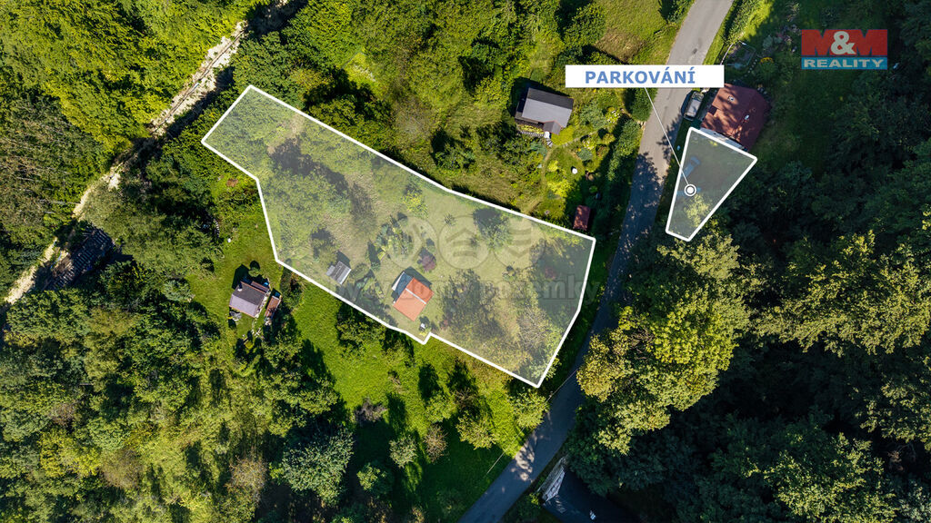 Součástí prodeje je i menší pozemek nad silnicí, který je využívaný jako parkovací plocha pro více aut. Do chaty je zavedena elektřina a voda je přivedena z místní studánky.