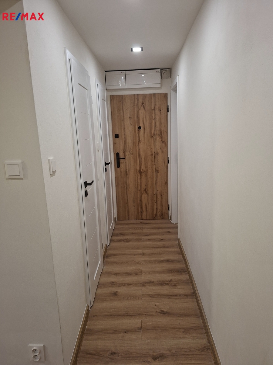 V celém bytě jsou plastová okna s izolačním dvojsklem a předokenními žaluziemi. Aktuálně se dokončuje rekonstrukce, která zahrnuje na podlaze plovoucí vinylové podlahy a dlažbu. Nová, na míru vyrobená kuchyně , s veškerými spotřebiči. Jádro je zděné.