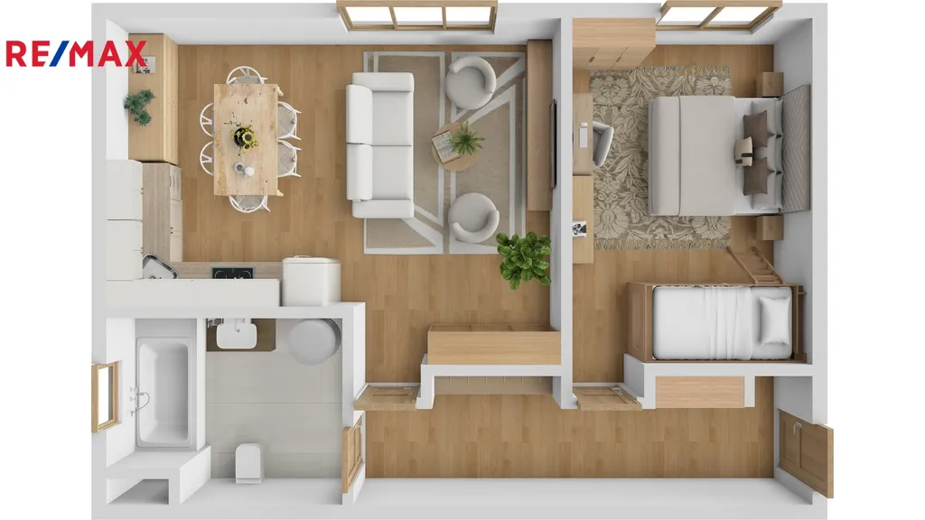 Ve výhradním zastoupení společnosti RE/MAX Future nabízíme k prodeji moc pěkný a prostorný apartmán o dispozici 2+kk, který se nachází v přízemí domu v centu obce Deštné v Orlických horách. Dispozice bytu má následující uspořádání: obývací pokoj s kuchyňským koutem (26,98 m2), pokoj (15,79 m2), chodbu (9,38 m2) a koupelnu s toaletou (6,91 m2). Celková podlahová plocha bytu včetně sklepa je 63 m2, užitná plocha 59 m2. S vlastnictvím bytu je spojeno právo výlučného užívání parkovacího stání přímo u domu a sklepní kóje o velikosti 3,87 m2. Vytápění je řešeno elektrickými přímotopy s možností dálkového ovládání, všechna okna jsou vybavena žaluziemi a venkovními roletami. Byt je vhodný pro vlastní rekreaci nebo bydlení, ale i jako investice na krátkodobé pronájmy.