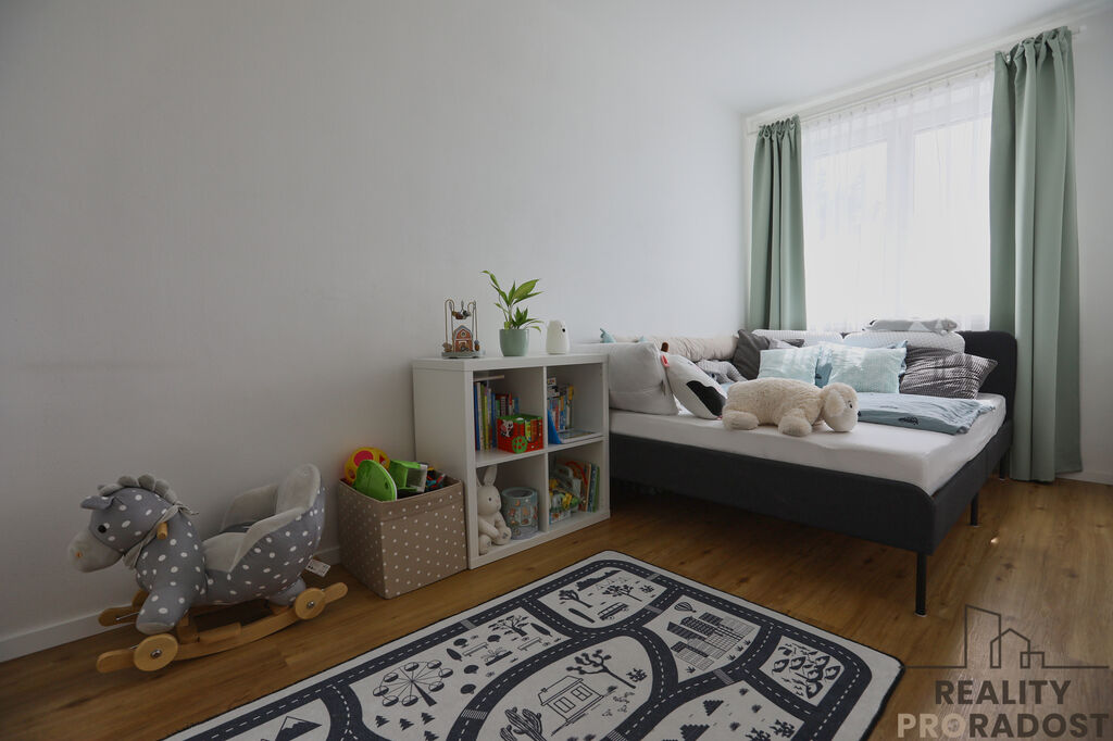 ☑️ v bytě se nachází obývací pokoj s kuchyňským koutem, dále prostorná šatna, ložnice s lodžií a dětský pokoj, koupelna se sprchovým koutem a samostatné wc