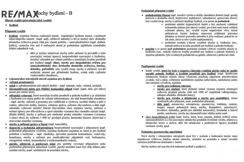 • Územní plán: plocha B – plochy bydlení (možnost výstavby řady rodinných domů, venkovský charakter)