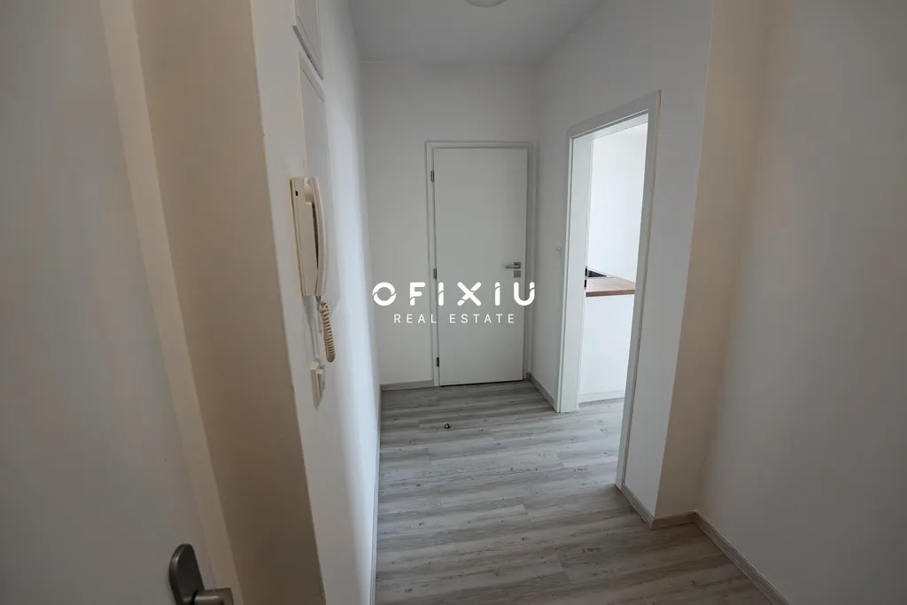 Byt se pronajímá nevybavený a nachází se v sedmém nadzemním podlaží a skládá se z obývacího pokoje s kuchyňským koutem, terasy, ložnice, chodby, koupelny a samostatné toalety. V bytě bude nová kuchyňská linka vybavená elektrickým sporákem, troubou, digestoří a myčkou. V koupelně se nachází sprchový kout, umyvadlo a přípojka na pračku.