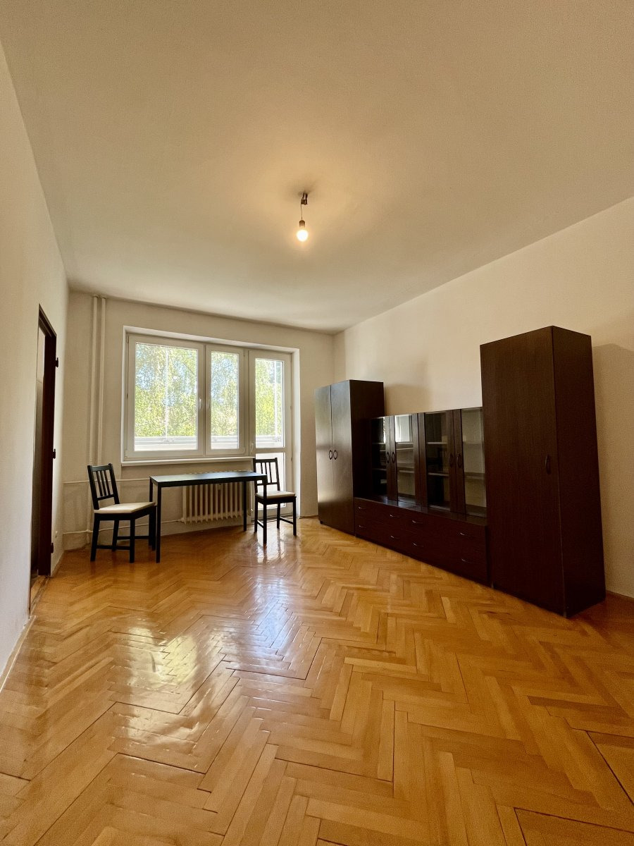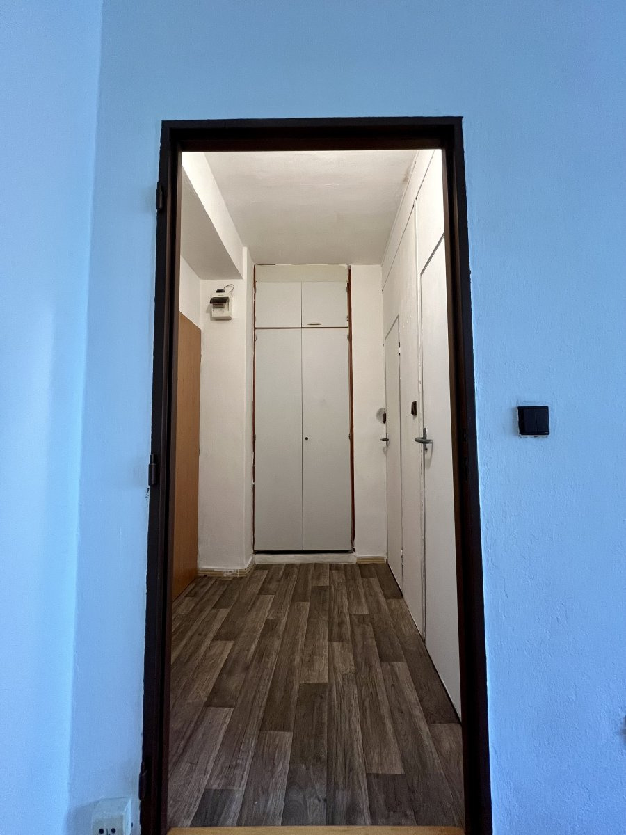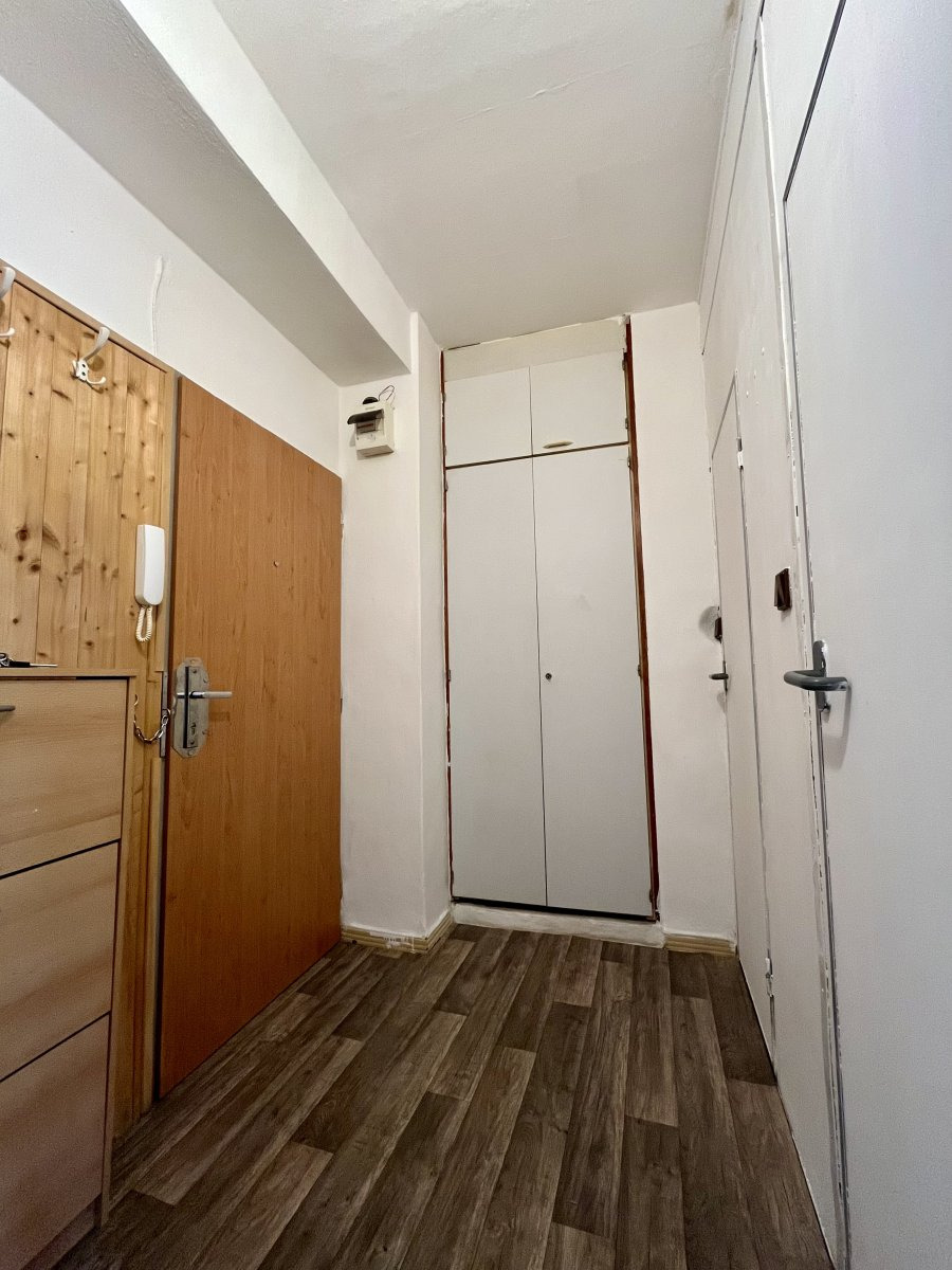 Byt je starší, ale plně funkční a připravený k okamžnému nastěhování. Součástí je zasklený balkon, přístupný z průchozího pokoje, a sklepní kóje.