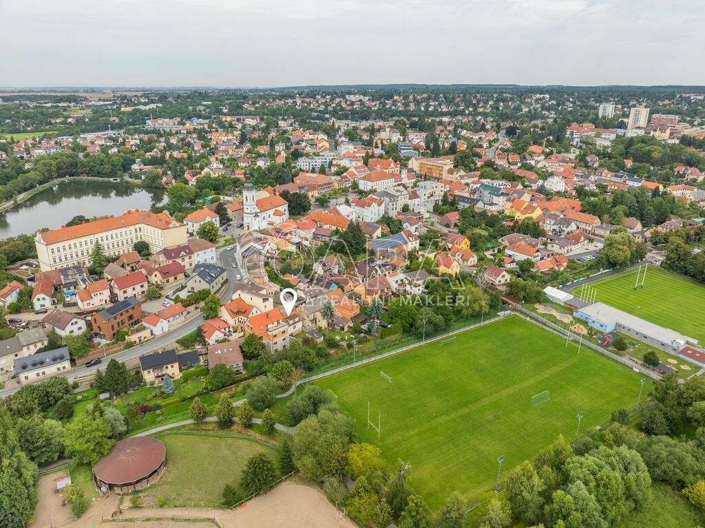 Dům má skvělé umístění v rámci města. Výhled je na zrekonstruovaná sportoviště a Lázeňskou louku, schůdky z ulice Podskalí přímo naproti domu se pak dostaneme na Masarykovo náměstí, kde se nachází úplná občanská vybavenost, vč. zastávky BUS.