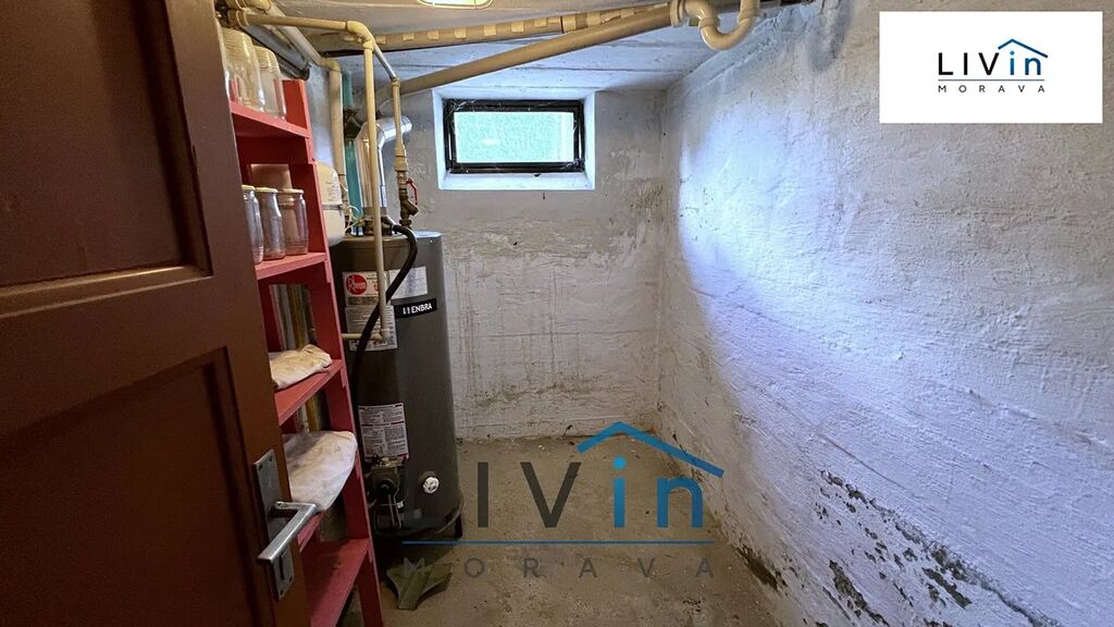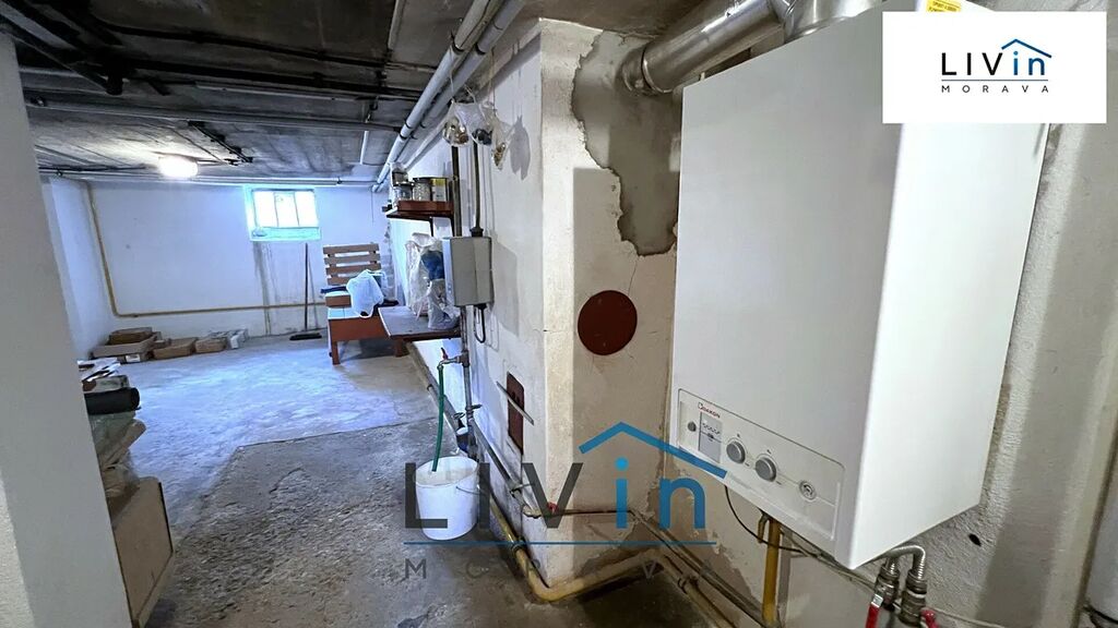 Suterén je rozdělen na tři průchozí sklepní místnosti. Kromě dostatku úložného prostoru zde najdete technické zázemí domu, tedy plynový kotel pro vytápění a elektrický bojler pro ohřev vody.
