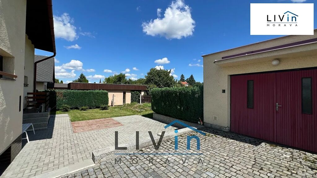 Velká, rovinatá zahrada nabízí široké možnosti využití – od odpočinkové zóny přes okrasné záhony až po prostor pro bazén či hřiště. Součástí pozemku je nový dřevěný zahradní domek o velikosti 25 m² vhodný pro uskladnění nářadí a také samostatná garáž o ploše 30 m² s vydlážděným vjezdem z ulice přes bránu domu.