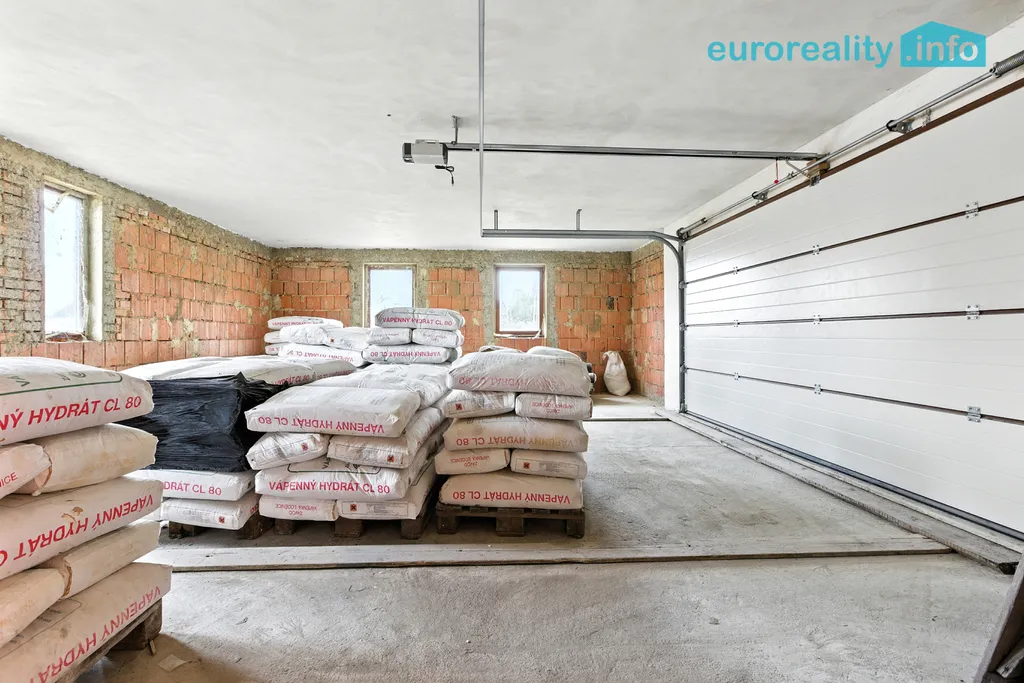 - Hrubá stavba domu – tři podlaží, tzn. suterén s třemi sklepy, přízemí s garáží 32 m2 a podkroví, celkem 302 m2, nabízí se kombinace bydlení s podnikáním. Dům je zděný z bloků Porothermu, garáž tvárnice Hebel. Střešní krytina Bramac. U domu je plánována velká terasa s bazénem.
