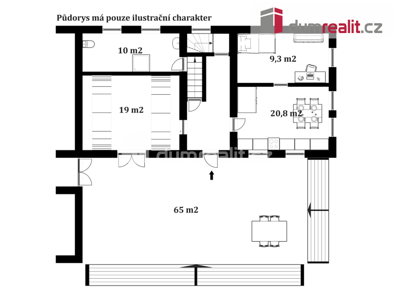 Doménou je pak prosluněná terasa o cca 65 m², pod kterou je níže zapuštěn bazén.