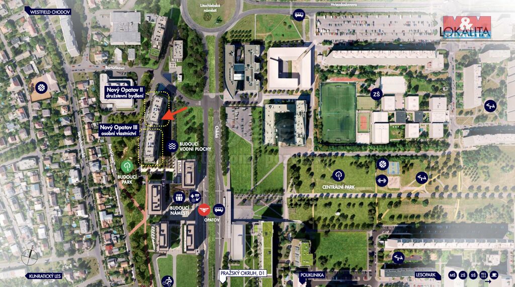 Nabízíme k prodeji moderní slunný rohový byt 5+kk s užitnou plochou 106 m² a prostornou lodžií (17 m²). Nachází se v 7. patře nově vznikajícího projektu Nový Opatov od developera Finep. Jedná se o převod družstevního podílu, kde na počátku zaplatíte 5.290.000 Kč a zbývající nesplacenou anuitu 12.309.526 Kč začínáte splácet po převzetí bytu formou pravidelných měsíčních splátek. Aktuální měsíční splátka anuity činí 62.643 Kč a je nyní nastavena na 35 let. Není třeba hypotéka ani dokládání příjmů. K bytu je možné dokoupit dvě parkovací stání. Kolaudace již v květnu 2028, byt je možno prozatím uzpůsobit svému vkusu. Opatov patří k lukrativním částem Prahy, díky metru, které se nachází jen pár minut od projektu a celkové občanské vybavenosti. Zajímavá nabídka, jak pro vlastní bydlení, tak na investici. Neváhejte nás kontaktovat.