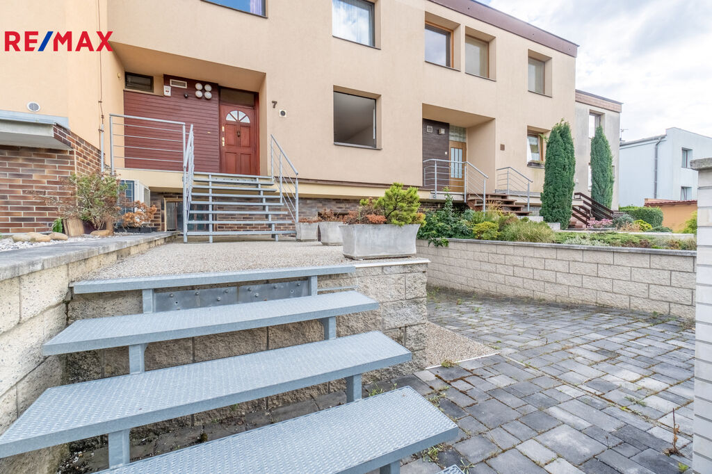 Nabízíme k pronájmu prostorný třípodlažní řadový dům o dispozici 5+1 s užitnou plochou 226 m² a zahradou o velikosti 292 m², který se nachází v klidné ulici Radostná, Praha 10 – Štěrboholy.