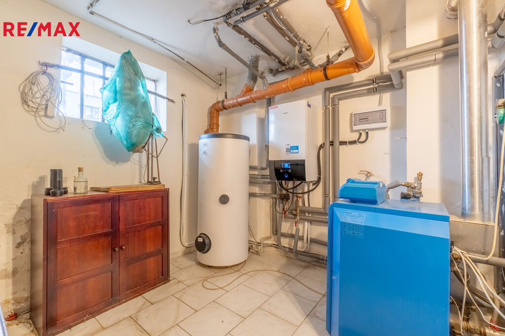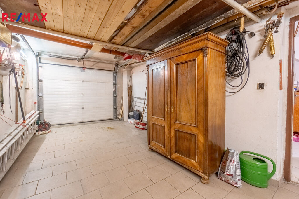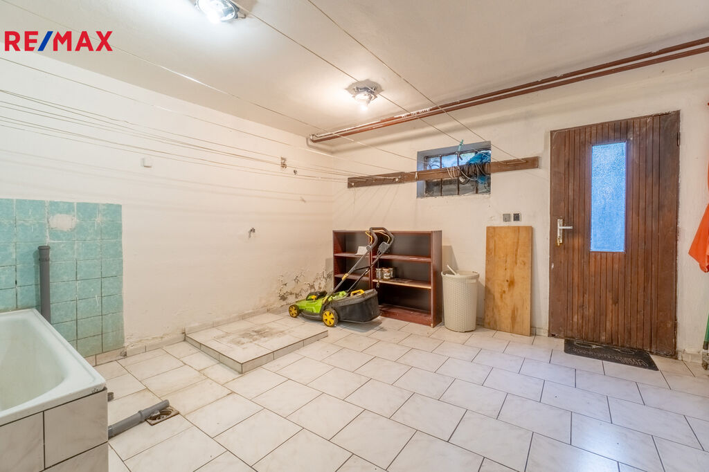 Suterén: garáž, dílna, technická místnost s kotelnou, prádelna a sklepní prostory.
