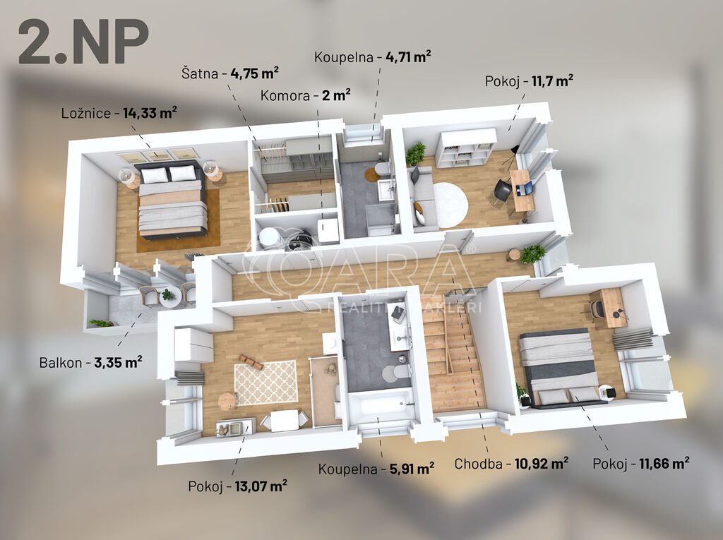 • možnost jednoduchého rozšíření dispozice na 6+kk