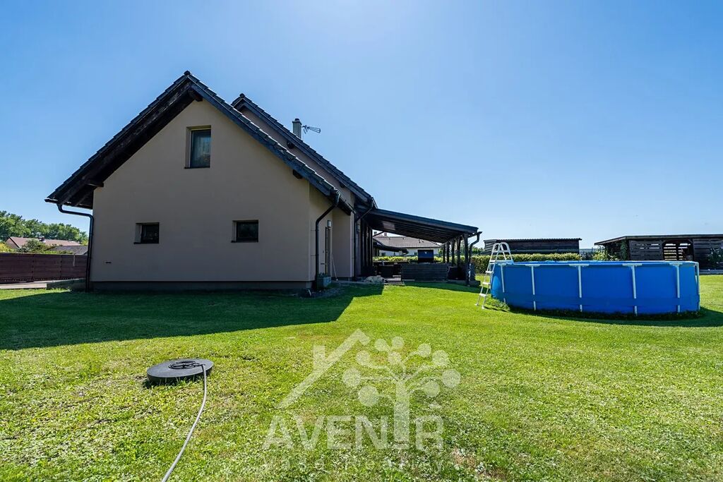 Dům má dvě koupelny, garáž a možnost parkování pro další auta na pozemku. Na zahradě najdete velkou pergolu s výhledem na celý pozemek a prostorný zahradní domek. Celý dům je oplocený, což vám zaručí soukromí a klid.