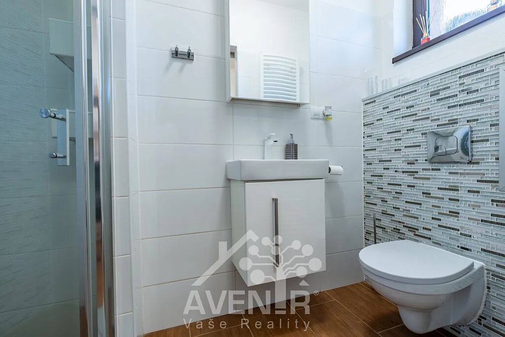 V přízemí vás přivítá prostorný obývací pokoj propojený s kuchyní a špíží, koupelna a také samostatný pokoj s vlastní kuchyňskou linkou a vstupem – ideální pro hosty, pracovnu nebo menší bytovou jednotku. V patře se nachází ložnice, tři další pokoje a velká koupelna.