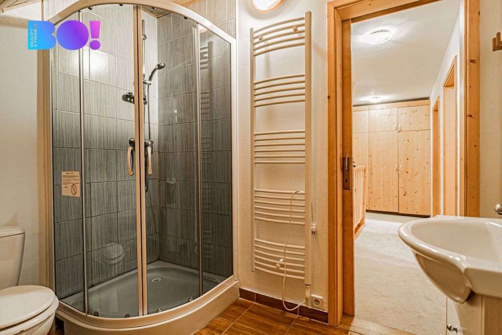 1. patro: druhá koupelna se sprchovým koutem a dva prostorné pokoje