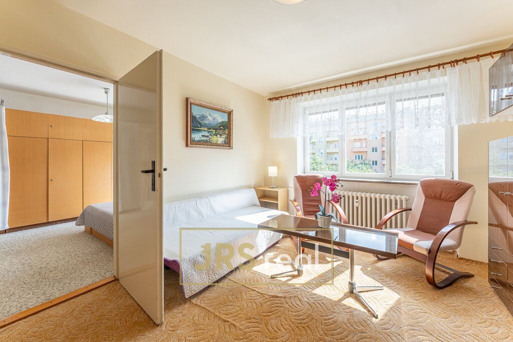 V exkluzivním zastoupení majitele nabízíme k prodeji byt 2+1 o velikosti 50 m2, který se nachází ve 2. nadzemním podlaží cihlového domu po revitalizaci. K bytu náleží dvě sklepní kóje a také zahrádka za domem, kterou lze využít jak k pěstování drobných plodin, tak i k odpočinku. Byt je po částečné rekonstrukci a má velmi praktickou dispozici. Po vstupu vás přivítá prostorná chodba s velkou šatní skříní, odkud je vstup do všech místností. Kuchyň je vybavena kuchyňskou linkou se sporákem, troubou a digestoří, nechybí jídelní stůl, křesla, skříňka ani pračka. V ložnici najdete manželskou postel, velkou šatní skříň a komodu. Obývací pokoj nabízí gauč, konferenční stolek, dvě křesla a obývací stěnu. Koupelna je společná s WC a je vybavena vanou, umyvadlem a zrcadlem. Vytápění je řešeno plynovým kotlem s rozvodem do radiátorů.