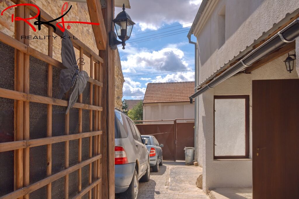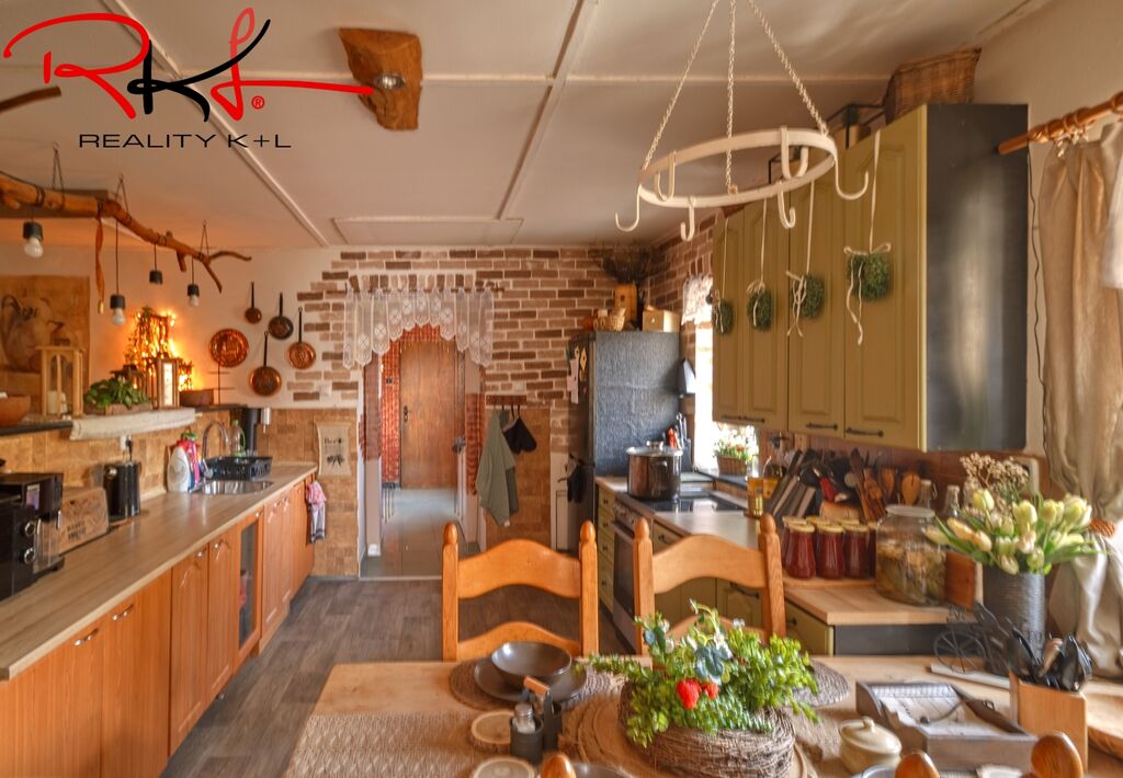 Přístup samostatným vchodem po betonovém schodišti přes otevřený prostor původní stodoly (vhodný jako budoucí obytný prostor). Dispozice: chodba, koupelna, toaleta, kuchyně s linkou spojená s obývacím pokojem, dva samostatné pokoje.