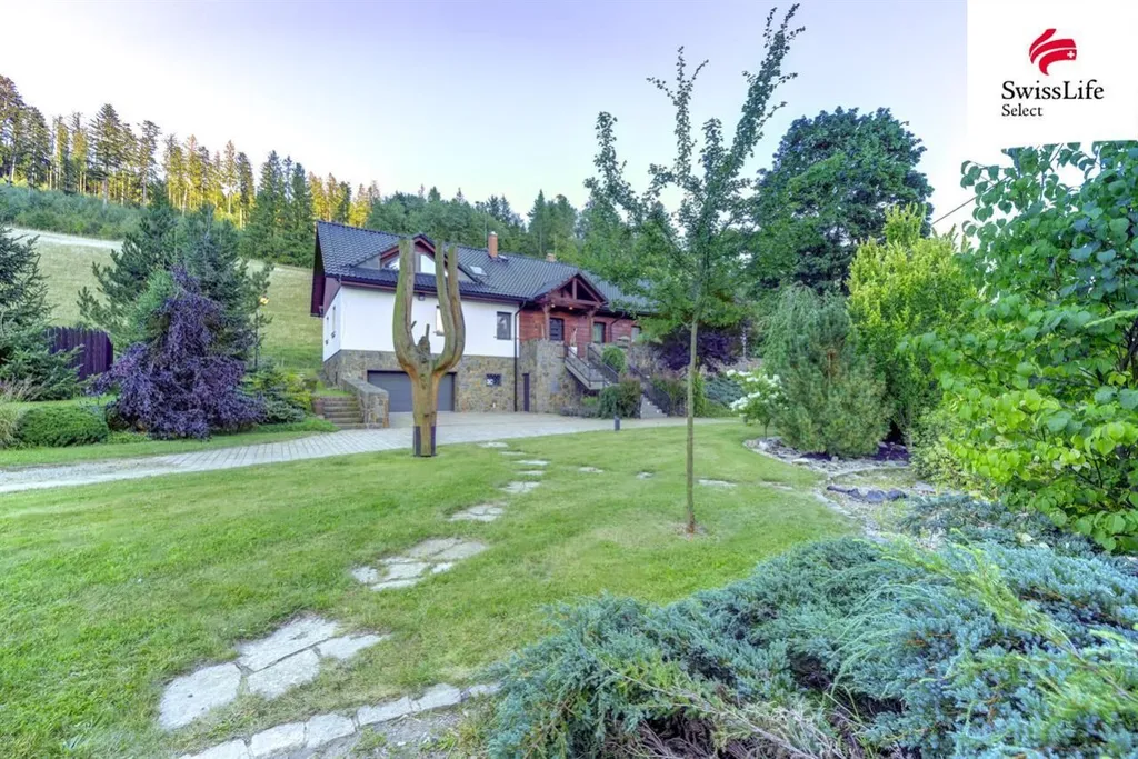 Rodinný dům je o dispozici 6+1, s užitnou plochou 298 m2, okolo domu se rozprostírá pozemek o celkové výměře 4838 m2. K nemovitosti patří soukromý rybník a koryto vodního toku, které si majitel upravil dle svých představ.V suterénu domu je prostorná garáž o výměře 50 m2, kotelna a sklad.