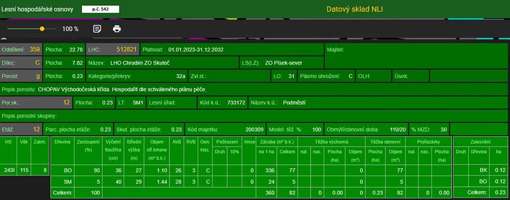Jedná se o p.č. 542 vedená jako lesní pozemek o celkové výměře 2 306 m2.