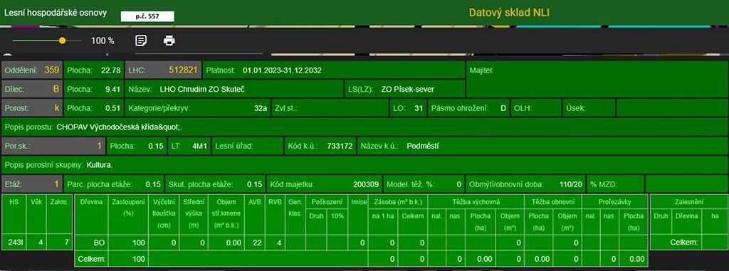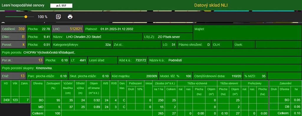 Dále se jedná o p.č. 557 vedená jako lesní pozemek o celkové výměře 2 543 m2,