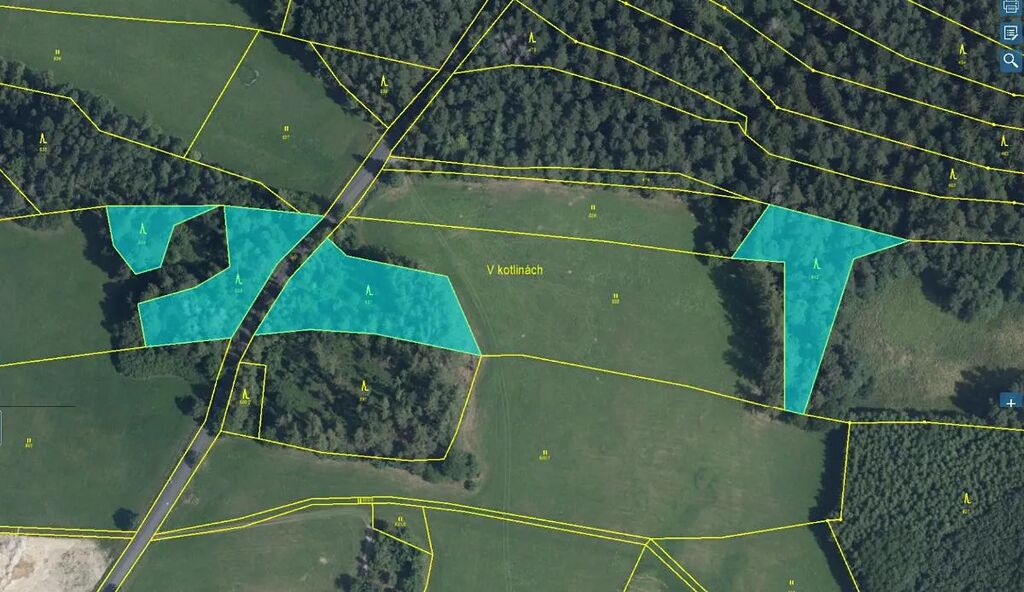 p.č. 558 vedená jako lesní pozemek o celkové výměře 1 907 m2 a