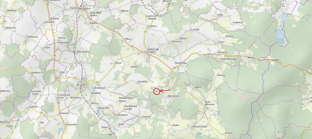Prodám lesní pozemek v k.ú. Nechanice u Nových Mitrovic.