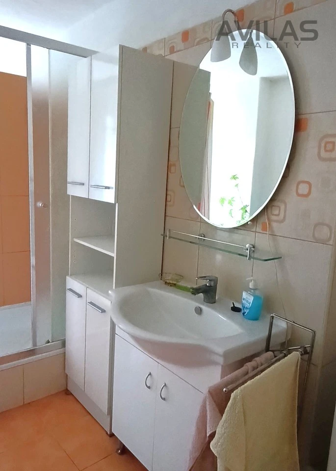 Kuchyně je bez rozvodů vody. Koupelna poskytuje veškerý komfort dnešní doby, sprchový kout, toaletu, pračku a myčku na nádobí.