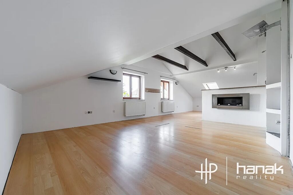 Ve druhém podlaží se nachází obývací pokoj s kuchyní, dva pokoje, koupelna a WC. I toto patro může sloužit jako samostatná bytová jednotka 3+kk o užitné ploše 76 m².