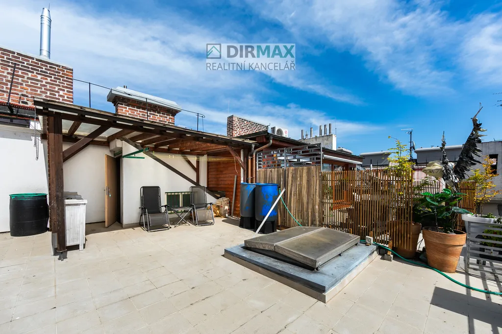 Výrazným bonusem je možnost využívání terasy, umístěné na střeše domu. Terasa je orientována na jižní stranu a nabízí výhled (nejen) na řeku Radbuzu. Kromě kochání se výhledem je zde možné i pěstování květin, nebo věšení prádla.