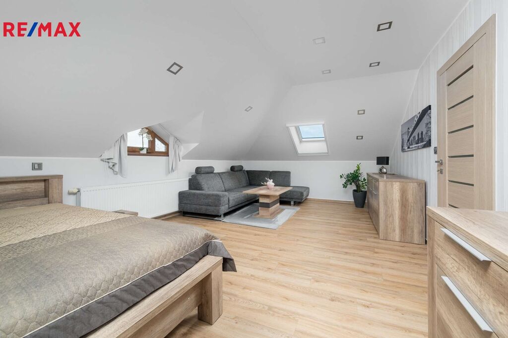 Dům je o dispozici 5+kk a není podsklepen, na každém patře je koupelna s WC. Ve 2. NP se nachází balkón s výhledem na Krkonoše a do zahrady. Součástí domu je prostorná garáž sloužící též jako dílna. Na zahradě a v okolí domu naleznete také zahradní domek s místem pro grilování, samostatnou ovocnou zahradu se stromy a skleníkem a zastřešené parkovací stání pro 3 vozy.