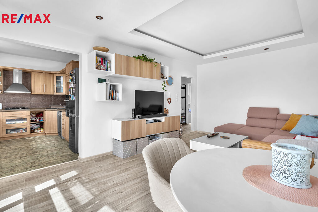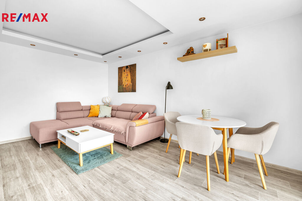 Byt je prodáván včetně vybavení v ceně (v případě zájmu bude ponechán) a disponuje praktickým dispozičním řešením. Vstup na lodžii byl upraven a nyní zde najdete velké francouzské okno, které interiér krásně prosvětluje. Lodžie o velikosti 2,8 m² je zasklená. V dětském pokoji je vybudována kompletní stěna na míru, s množstvím úložných prostor. V ložnici se nachází kvalitní postel z ProSpánku v hodnotě cca 30 000 Kč. K bytu náleží také sklep o velikosti cca 3 m².